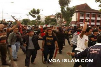 Kuffar di Pontianak Lakukan Sweeping dan Paksa Muslimah Melepas JilbabJAKARTA (voa-islam.com) - Dari pemantauan yang dilakukan terhadap konflik di Pontianak Kalimantan Barat, umat Islam sangat terzhalimi. Ketua DPP FPI Munarman menyampaikan bahwa yang melakukan penyerangan adalah orang-orang kafir terhadap umat Islam di Pontianak.